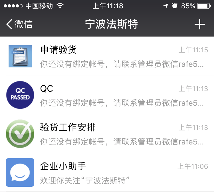 4.等待管理员认证后,会出现下面4个模块或者其中的一个或者几个。如果进入功能模块后点击按钮还是提示没有绑定账号,请联系提示信息里的联系信息