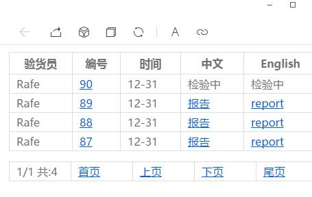 2.按‘报告’按钮可以查看自己所有申请的报告和验货状态,在线下载pdf格式报告,有中文和英文2个格式